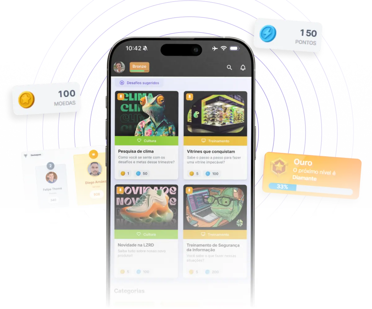 • Engajar colaboradores com desafios e gamificação
